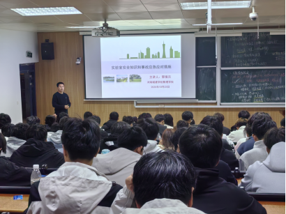 为提升学生的实验室安全认知,2025年10月23日晚上19:00-20:30,数理学院在7#B319 开展了题为《实验室安全知识和事故应急应对措施》的专题培训讲座。讲座由院实验中心郭俊吉老师主讲,数理学院大一新生参与此次培训活动。